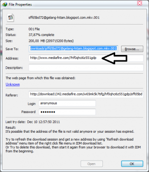 Di tabel file download, klik kanan -> klik properties file yang tidak boleh di resume dan hendak kita resume.